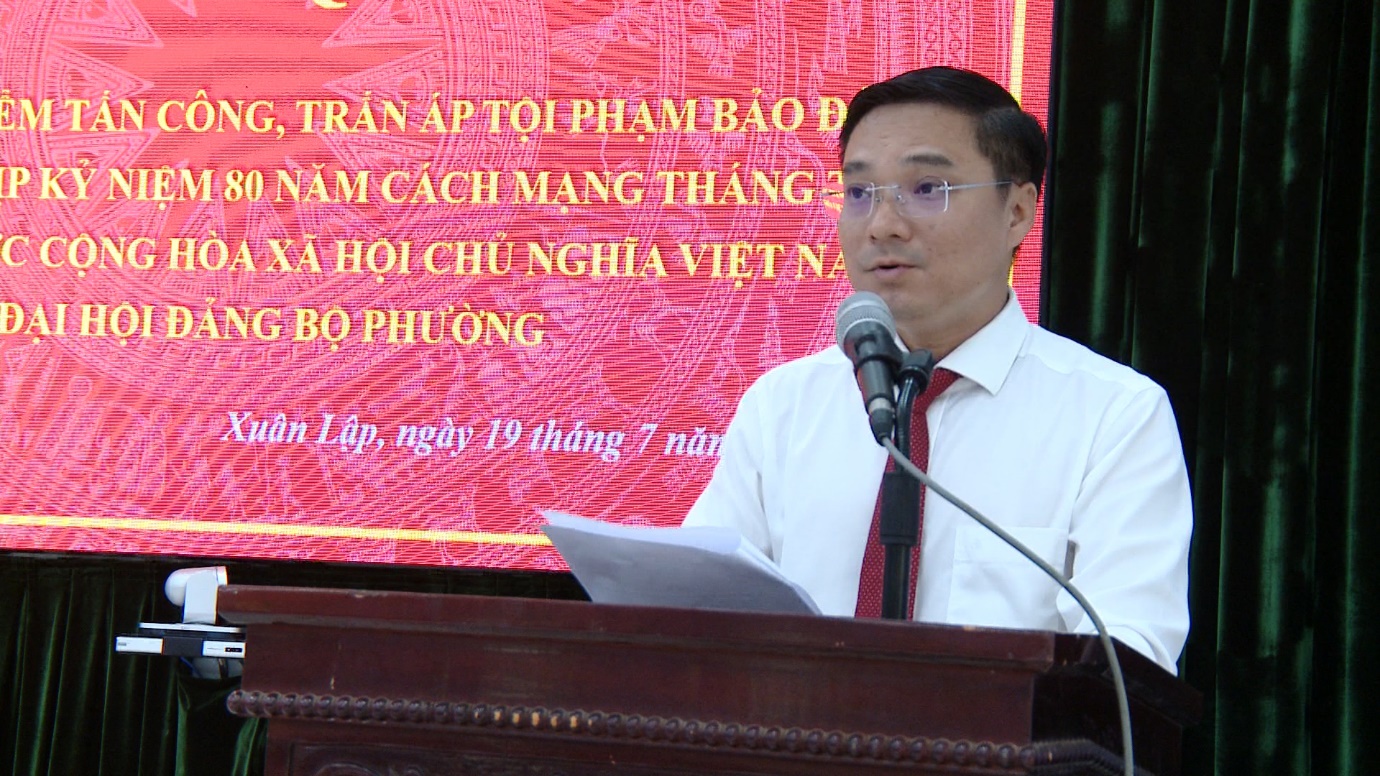 Phát biểu chỉ đạo tại buổi Lễ, đồng chí Trần Vĩnh Hiền, Phó Bí thư Đảng ủy, Chủ tịch UBND phường,thay mặt Đảng ủy, UBND phường ghi nhận và biểu dương tinh thần trách nhiệm, sự chủ động tham mưu của Công an phường Xuân Lập; đồng thời đề nghị các đồng chí tập trung thực hiện tốt một số nội dung trọng tâm: Trong đó tập trung trấn áp mạnh các loại tội phạm nổi cộm như: trộm cắp tài sản, cướp giật, tội phạm ma túy, tín dụng đen, xâm hại trẻ em, bạo lực gia đình, gây rối trật tự công cộng… không để hình thành các tụ điểm phức tạp, nhất là tại các khu vực giáp ranh. Chủ động nắm chắc tình hình địa bàn, quản lý chặt chẽ cư trú, nhân khẩu, hộ khẩu, xử lý nghiêm các hành vi vi phạm pháp luật, kịp thời tham mưu giải quyết các mâu thuẫn trong nội bộ nhân dân, không để phát sinh điểm nóng. Đẩy mạnh phối hợp liên ngành: giữa Công an – Quân sự – Tư pháp – Văn hóa – Mặt trận và các tổ chức chính trị - xã hội trong công tác tuyên truyền, giáo dục pháp luật; phát huy vai trò tự quản của Tổ dân phố, Tổ an ninh nhân dân, Tổ phòng chống tội phạm, camera cộng đồng để tạo thành thế trận liên hoàn, “tai mắt” của nhân dân đối với các hành vi vi phạm.