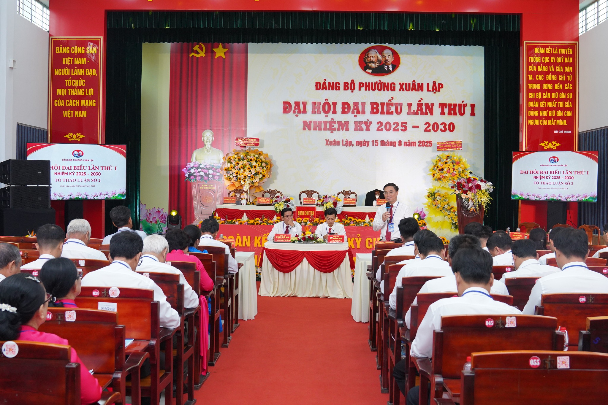 (Tổ Thảo luận số 2 - Đại hội Đại biểu Đảng bộ phường Xuân Lập lần thứ nhất, nhiệm kỳ 2025 - 2030. Ghi nhận tại điểm hội trường UBND phường.)